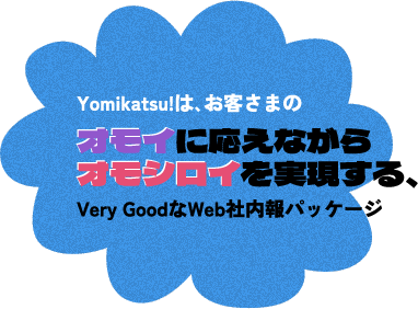「Yomikatsu!」はパッケージとスクラッチ開発の両方の良さを取り入れた、新しいWeb社内報。パッケージの手軽さを残しつつ、各社さまにフィットする「オモシロイづくり」をサポートします。